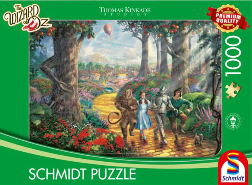 Experience the magic of The Wizard of Oz with this 1000 piece puzzle featuring iconic artwork by Thomas Kinkade. Piece together the vivid colors and intricate details to bring this beloved story to life. Perfect for puzzle enthusiasts and fans of this classic tale.